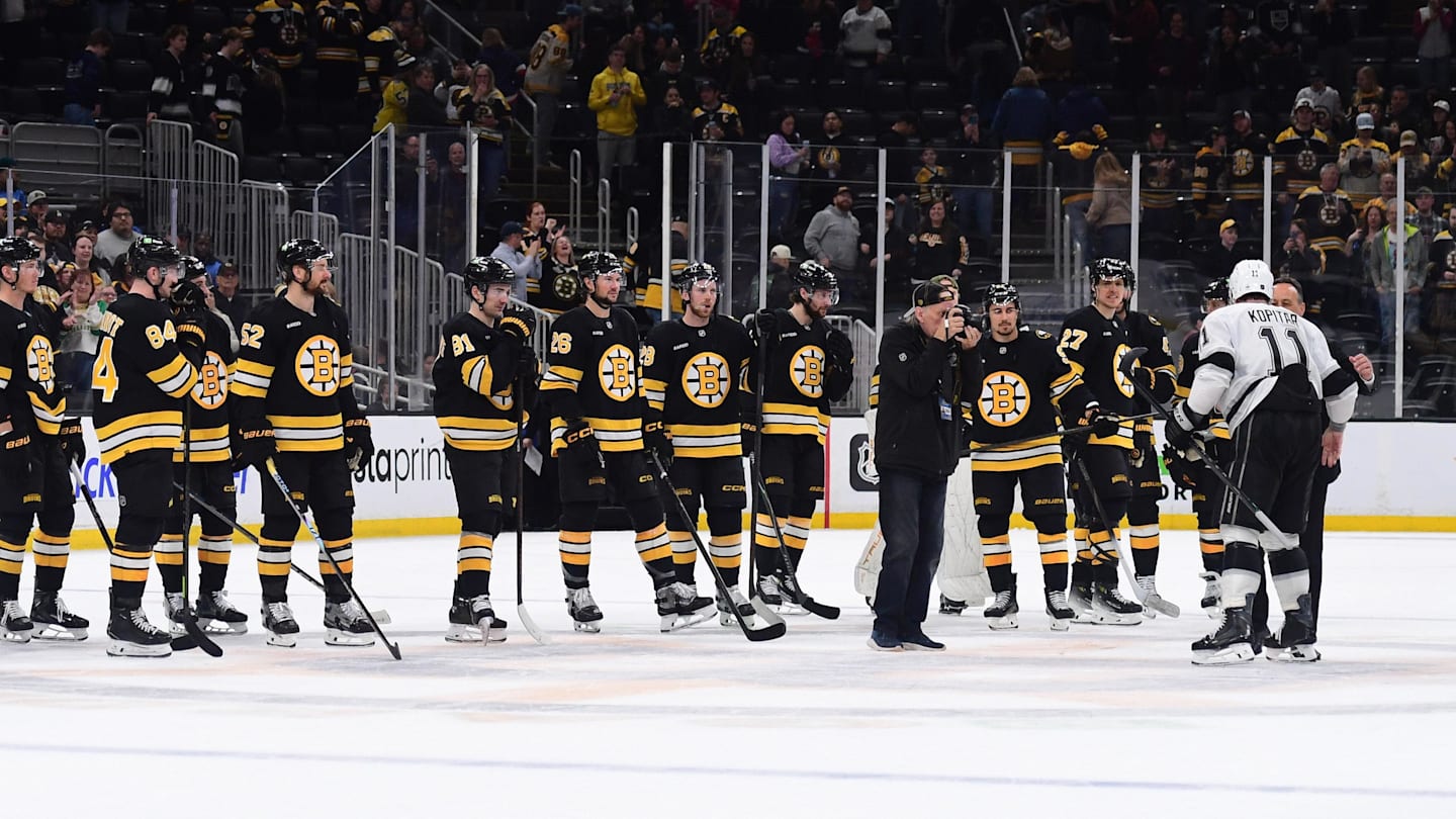 The @NHLBruins stayed on the ice after the game to shake hands with Anze Kopitar in what might be their last meeting with the @lakings captain! pic.twitter.com/Jd8OgaWj6i